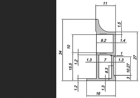 Профиль вертикальный NS "Вогнутый" Росла Черный мат. 5,4 м