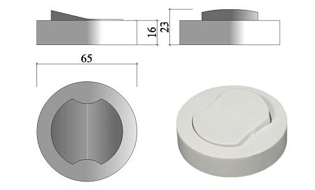 Выключатель накладной меб. круглый d66х16мм, 250В, 2,5А, с пров. 0,2м, белый