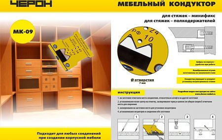 МК-09 Кондуктор мебельный для эксцентриковых стяжек (минификс, полкодержателей), d втулки 7мм