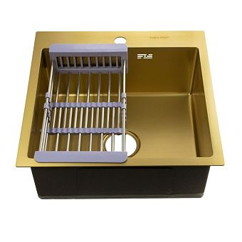 Мойка 50х50 см золото толщина 3,0 х 0,8/200 мм сифон с переливом + корзина