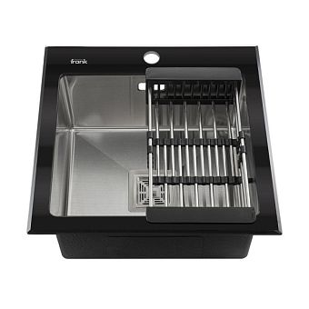 Мойка 60х50 см универсальная, черное стекло + нержавеющая сталь, толщина стекла 8 мм ,глубина