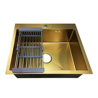 Мойка 60х50 см золото толщина 3,0 х 0,8/200 мм сифон с переливом + корзина