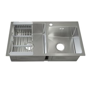 Мойка 80х50 см левая толщина 3,0 х 0,8/200 мм сифон с переливом + корзина