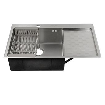 Мойка 80х50 см правая толщина 3,0 х 0,8/200 мм сифон с переливом + корзина