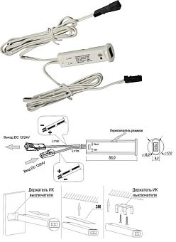 Выключатель ИК врезной HZK222, взмах руки/дверь, DC12-24В, 2А, 17х34мм, бел.