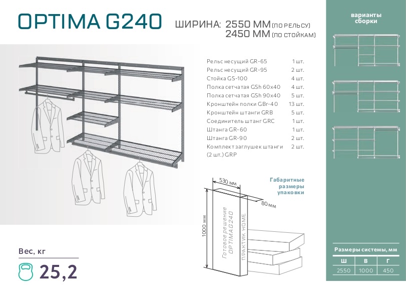 - Саморезы ∅ 5х50 mm (для рельсов) – 19 шт.