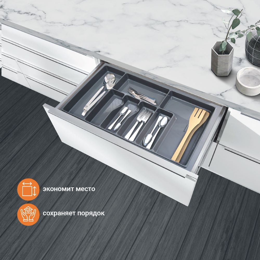 Лоток для столовых приборов М800мм, 740х485мм, серый