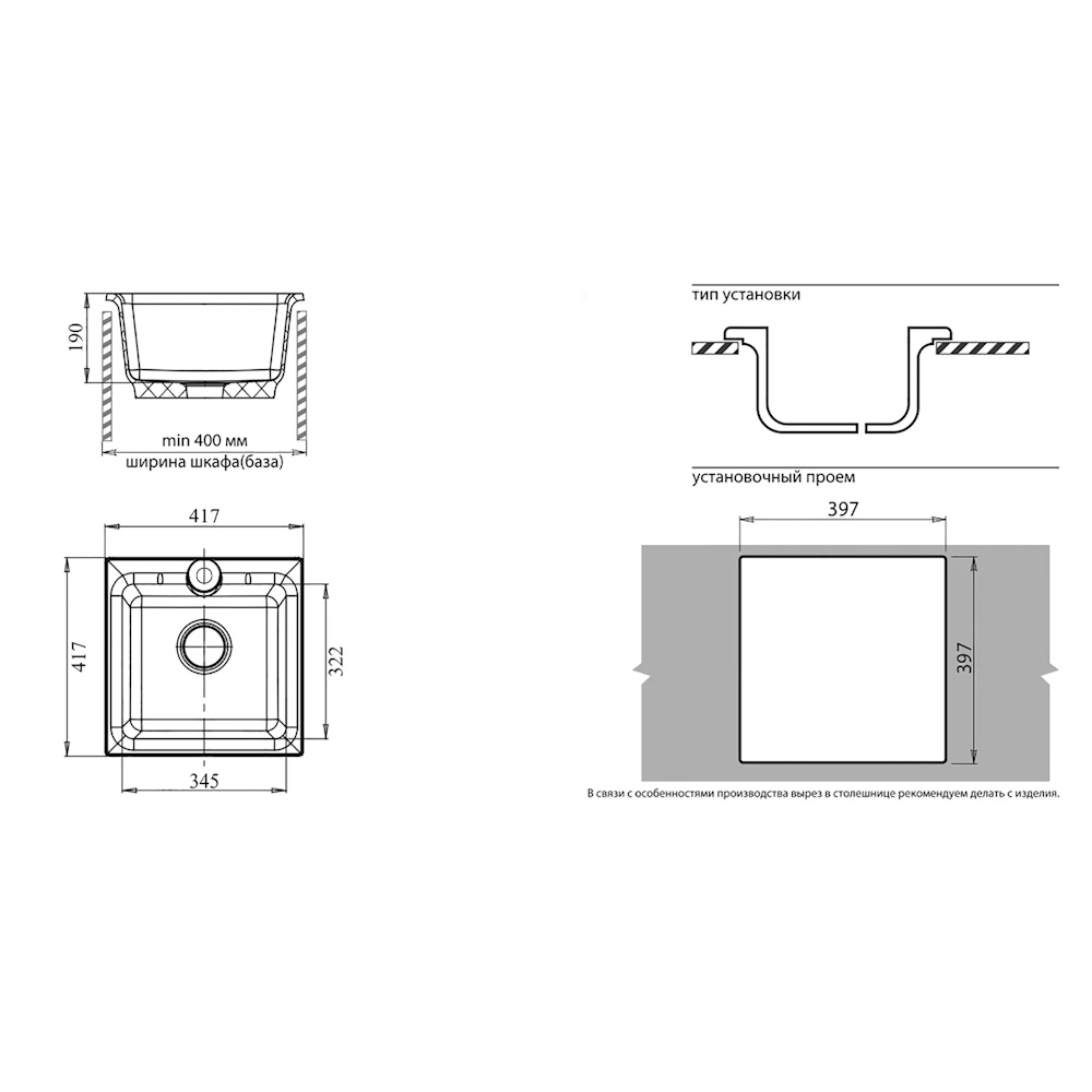 Простая квадратная форма при этом максимально задействует возможности небольшой кухни. Радиус скругления внутренних углов чаши обеспечит лёгкий уход. Безопасный и экологически чистый продукт. Повышенный комфорт. Стильный дизайн.