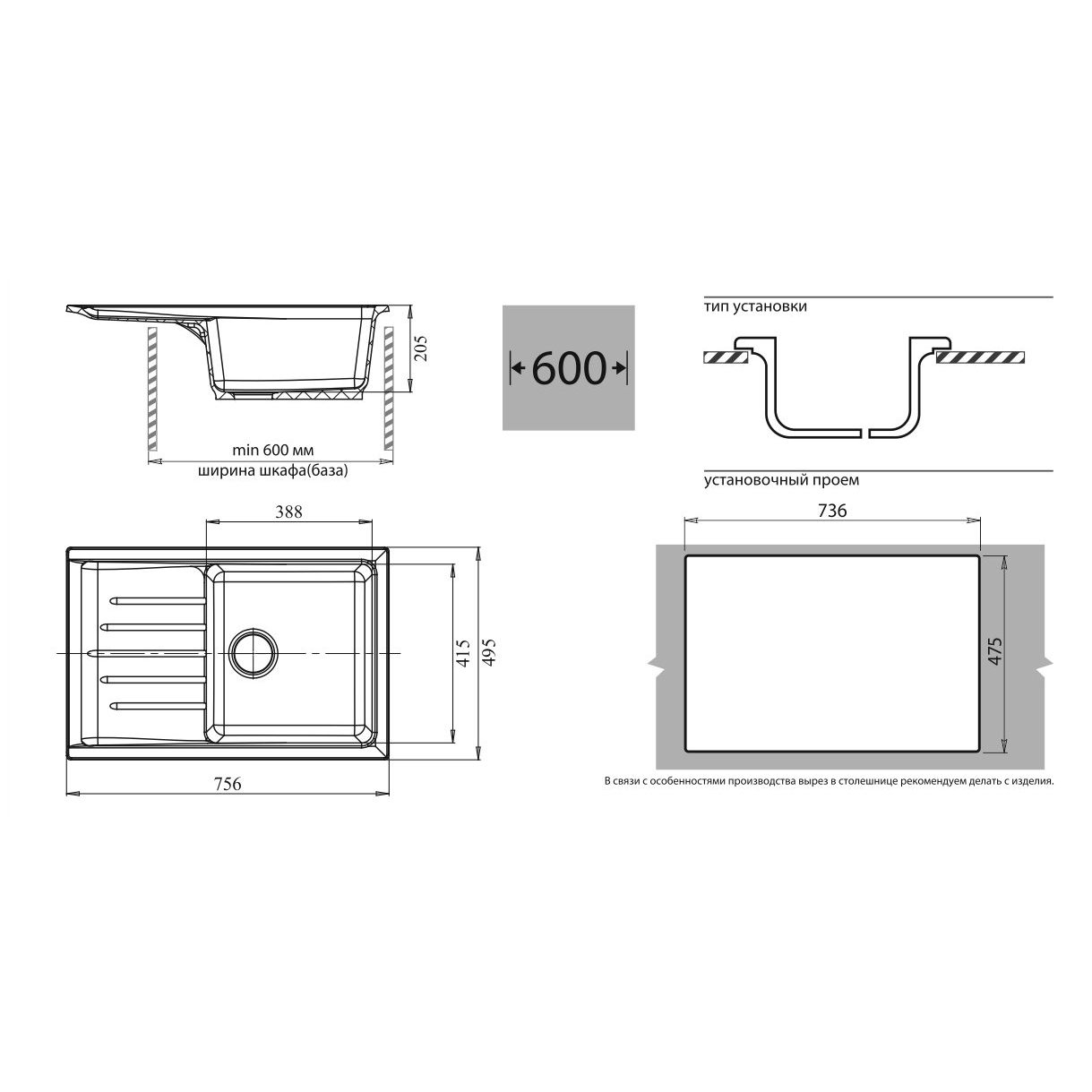 Модель кухонной мойки P-760L одна из самых популярных моделей кухнной мойки бренда GranFest. Простота, лаконичность, удобство, вместительное крыло и дизайн модели обеспечивают ей популярность среди ценителей комфортной жизни дома. Можно подобрать цвет для любого кухонного гарнитура. Радиус скругления внутренних углов чаши обеспечит лёгкий уход. Безопасный и экологически чистый продукт. Повышенный комфорт. Стильный дизайн. Высокое качество. Высокие потребительские характеристики: ударопрочность, гидрофобность, шумопоглащение, стабильность формы и геометрии, идеальное прилегание к столешнице.