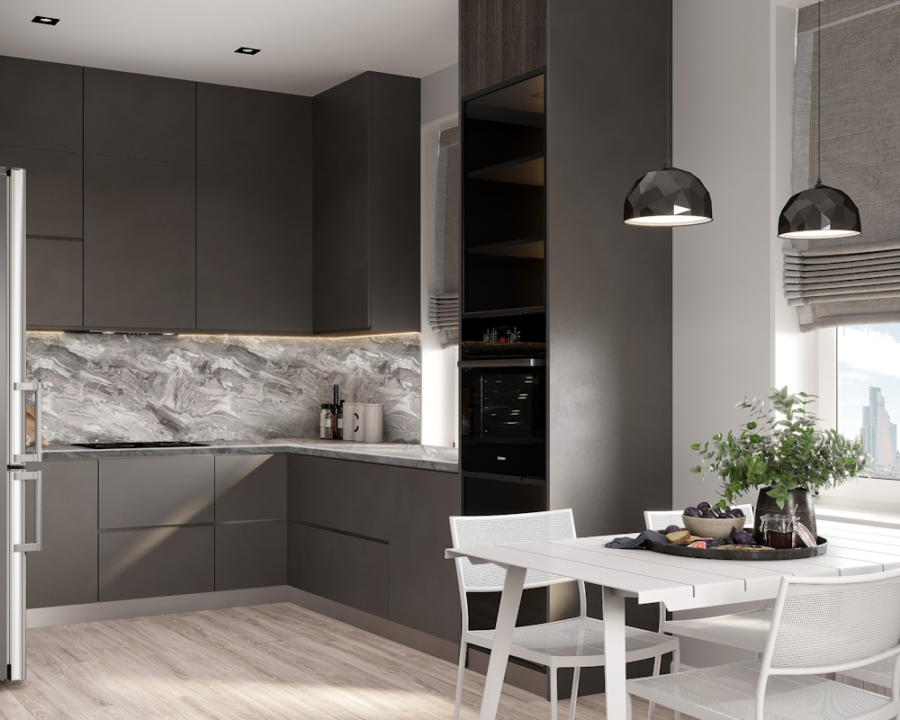 Стеновые панели уже давно заняли свою нишу в широком ассортименте комплектующих материалов для мебели. С их помощью можно замаскировать вентиляционные рукава, неудобные выступы, или сделать яркий акцент. Стеновые панели производятся на основе МДФ 4 и 6 мм, а также ДСП 10 мм класса эмиссии Е1. Для облицовки плит применяются бумажно-слоистые CPL и HPL пластики передовых европейских и российских компаний. МДФ является основным составляющим стеновых панелей. За счет ламинированного покрытия стеновые панели менее подвержены воздействию влаги и как следствие разбуханию, при соблюдении требований к монтажу и правилам эксплуатации. Ламинированная поверхность не позволяет накапливаться загрязнениям. Для ухода достаточно протирания влажной тряпочкой с использованием моющих средств без абразивных добавок. Не подвержены воздействию ультрафиолетовых лучей, проще говоря – не выгорают на солнце. В отличие от других способов оформления фартука или просто стены, установить стеновую панель можно самостоятельно.
