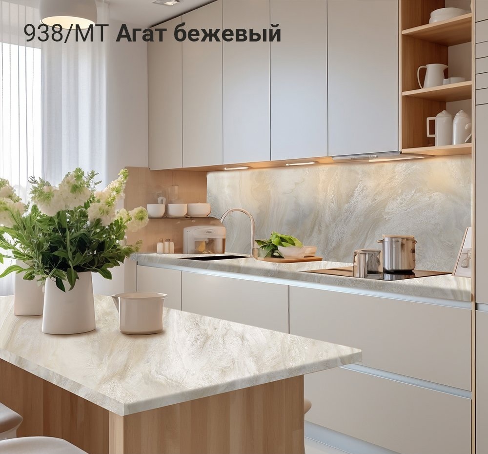 Столешница 3050x600x40 1U 938 Агат бежевый //1 обладает влагостойким слоем, который обеспечивает надежную защиту от разбухания столешницы при частом контакте с водой, благодаря качественной герметизации. Столешницы устойчивы к различным бытовым химиям, чернилам, пищевым кислотам и ультрафиолетовому излучению, что сохраняет их внешний вид и функциональность. Также они обладают высокой стойкостью к механическим повреждениям, таким как царапины и сколы и выдерживают высокие температуры без образования следов от горячей посуды.